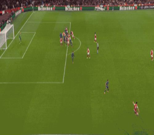 两队的攻防转换节奏相当快,第13分钟,阿森纳在马竞的禁区前连续短传,斯凯利的斜射打得有些偏。