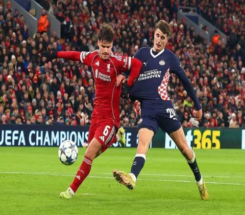 2025-26赛季欧冠小组赛第5轮继续进行,英超豪门利物浦坐镇安菲尔德球场对阵埃因霍温。此役伊萨克依然毫无作为,范戴克手球送点,索博斯洛伊破门难救主,利物浦主场1-4完败,连续3场比赛大比分失利,斯洛特帅位恐不保。
