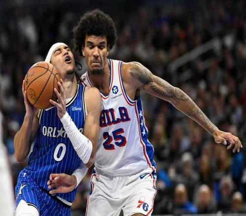 76人三巨头合砍69分力克魔术恩比德22+9马克西29分
